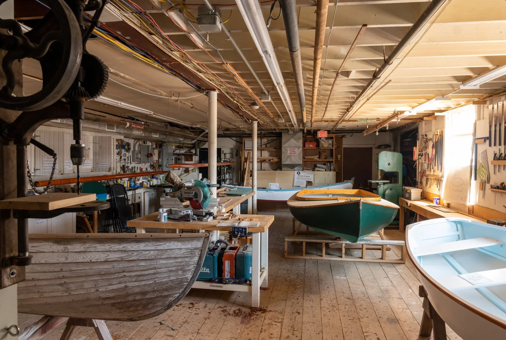 Visitors can see small boats being built and restored, as well as learn about the various wood working and boat building techniques.