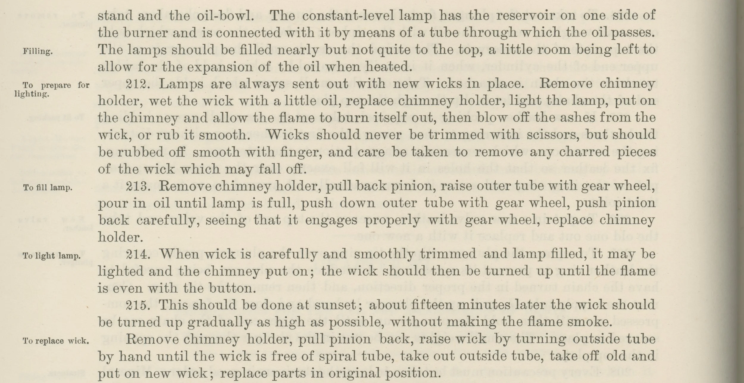 His lamp’s light could be seen from much farther out, and they burned much less whale oil per week than the previous lamps. Each day, keepers needed to ensure there was enough oil and wicks for the lamps to burn. Chimneys for the smoke/soot needed to be changed to stay clean and efficient. Much of this system was also made of brass or other metal that needed to be polished and cleaned.